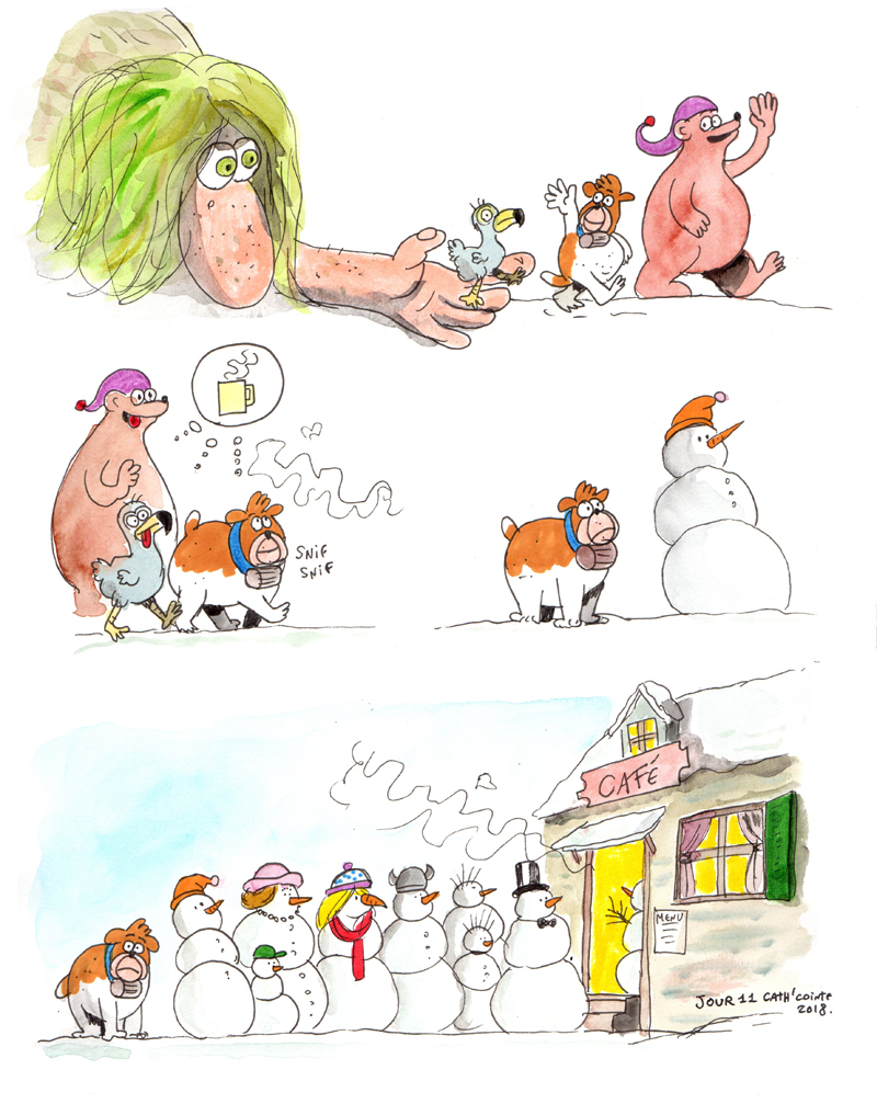Calendrier de l’avent: Jour 12 Publié le décembre 12, 2018 Publié dans l'histoire d'Olaf le Saint-BernardTagué Animaux, arbres montagnes, fantastiques, Humour, Les arbres, mer, Nature, oiseaux, sapin, sportLaisser un commentaire View this post on Instagram JOUR 12. Calendrier de l’avent, une BD par jour, avant Noël. #Noêl #calendrierdelavent #noel2018 #CalendrierDeLAvent #humour #BD #dessinhumoristique #montagne #hockeysurglace #arbres #saintbernard A post shared by Cath'Cointe (@catherine.cointe) on Dec 11, 2018 at 11:41pm PST