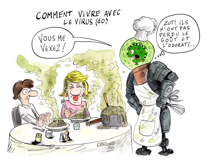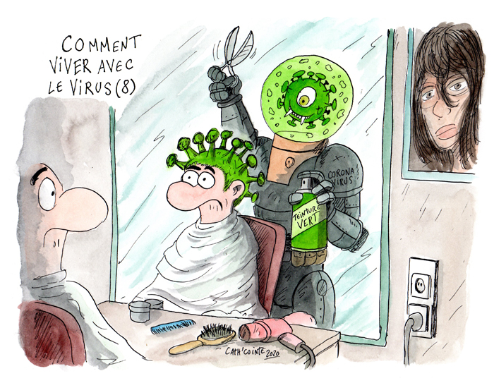 C’est le demière illustration de le série sur le déconfinement; « il faut apprendre à vivre avec le virus ».