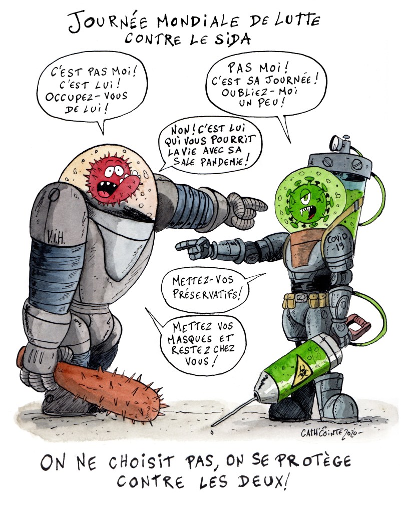 Lutte contre le sida et le covid-19… Publié le décembre 1, 2020 Publié dans Corona PaniqueTagué Dessin de presse, humour absurdeLaisser un commentaire