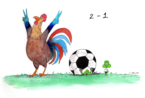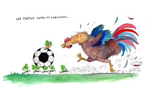 C’était France contre Irlande… Publié le juin 26, 2016 Publié dans Humour, IllustrationTagué sport, trèfleLaisser un commentaire Les dessins sur le foot pour l’Euro 2016 : France – Irlande, 8e de finale avec le coq gaulois et les tréfles.